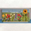 Een lief klein bloemenfeetje in een klein doosje, de voorkant van het doosje zit kant en klaar in het pakketje. Het is niet moeilijk te maken.